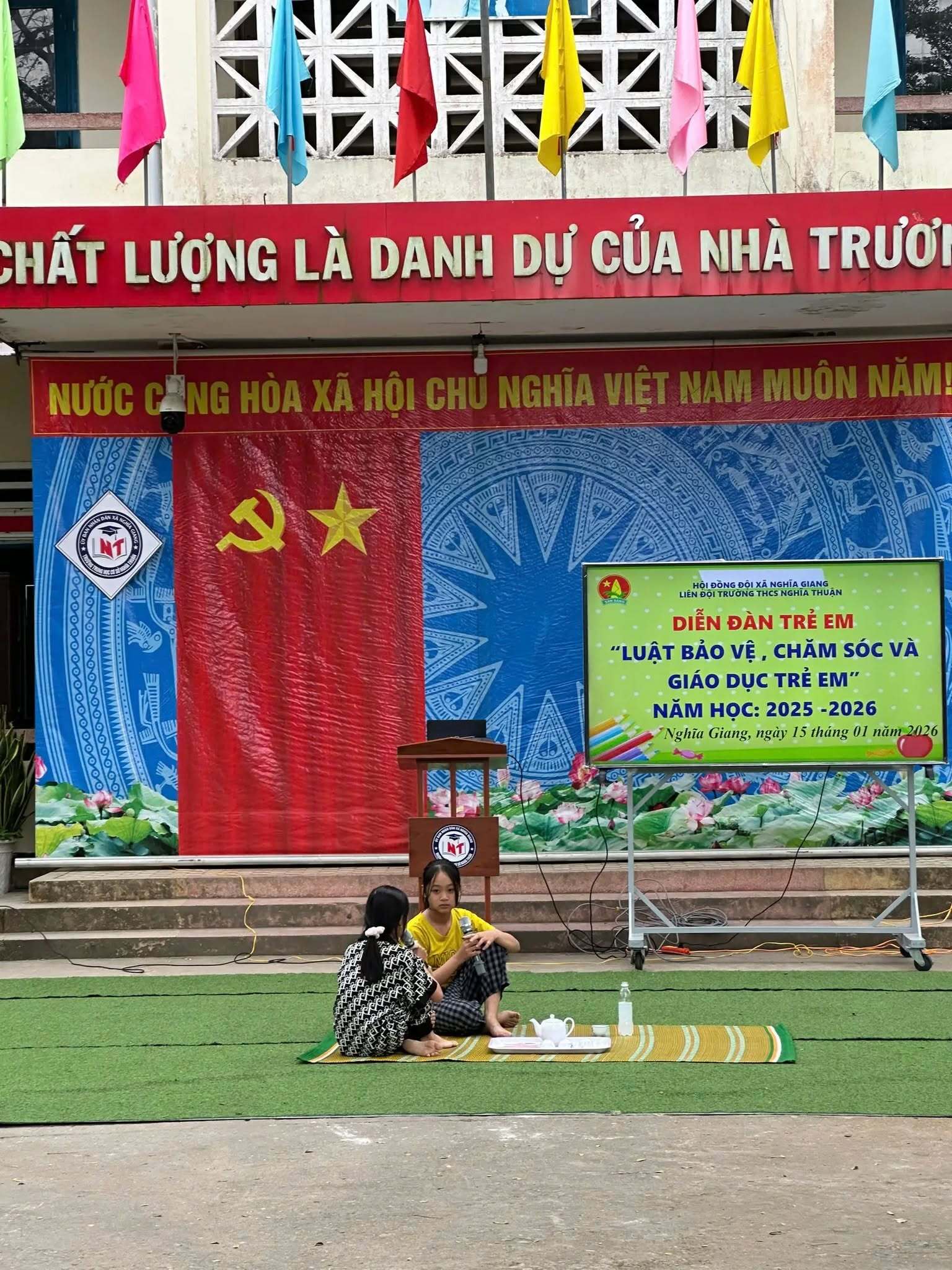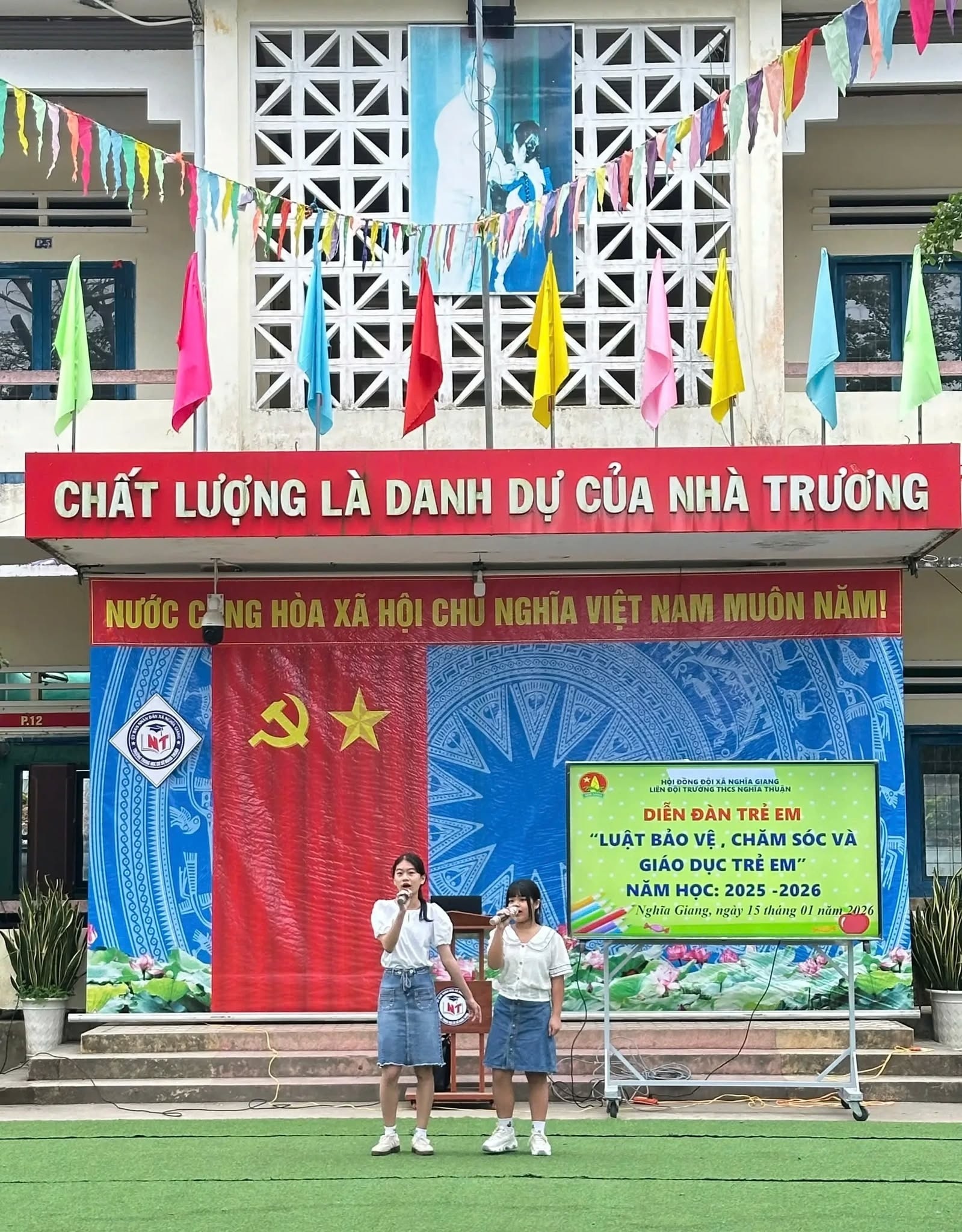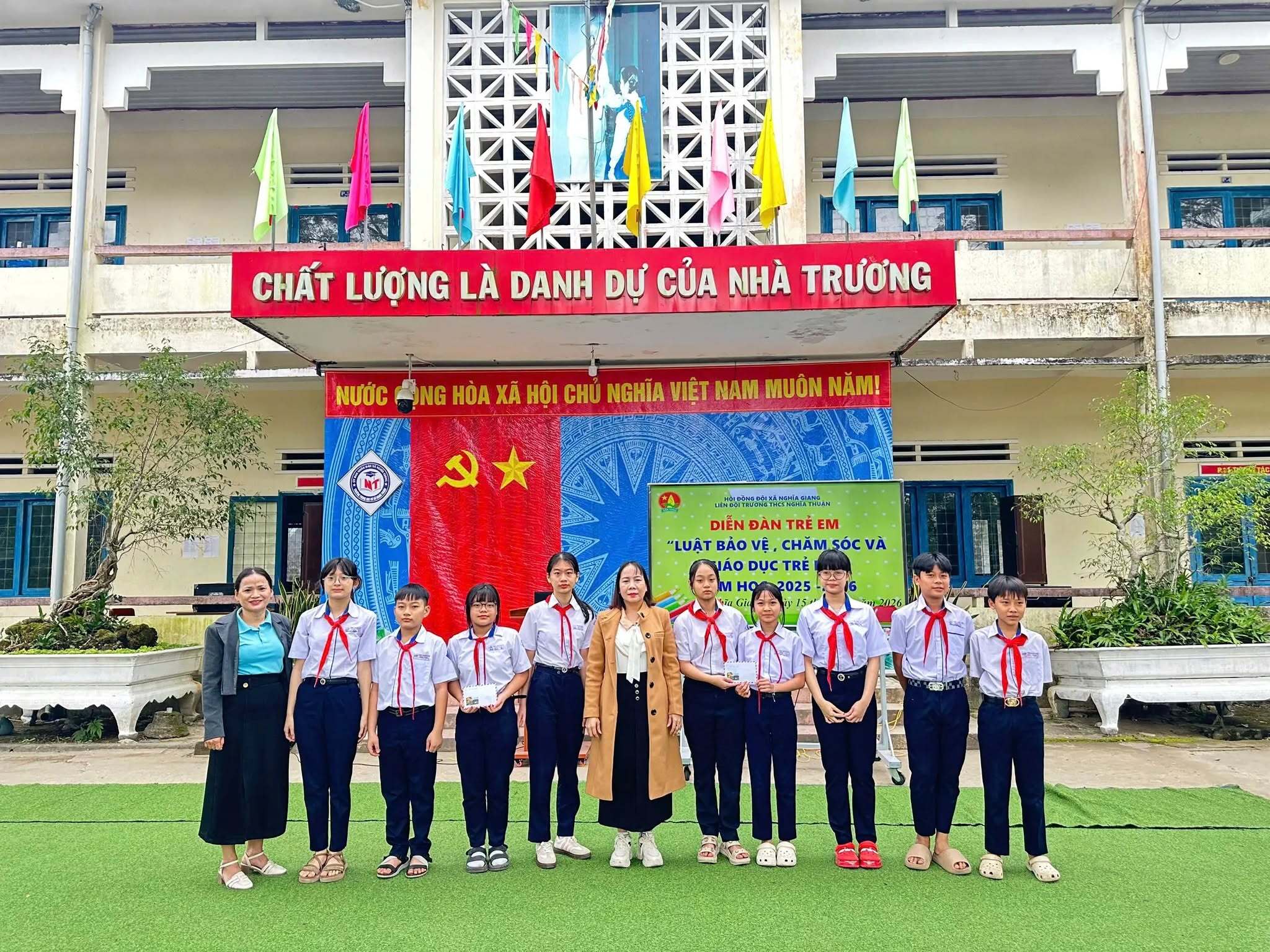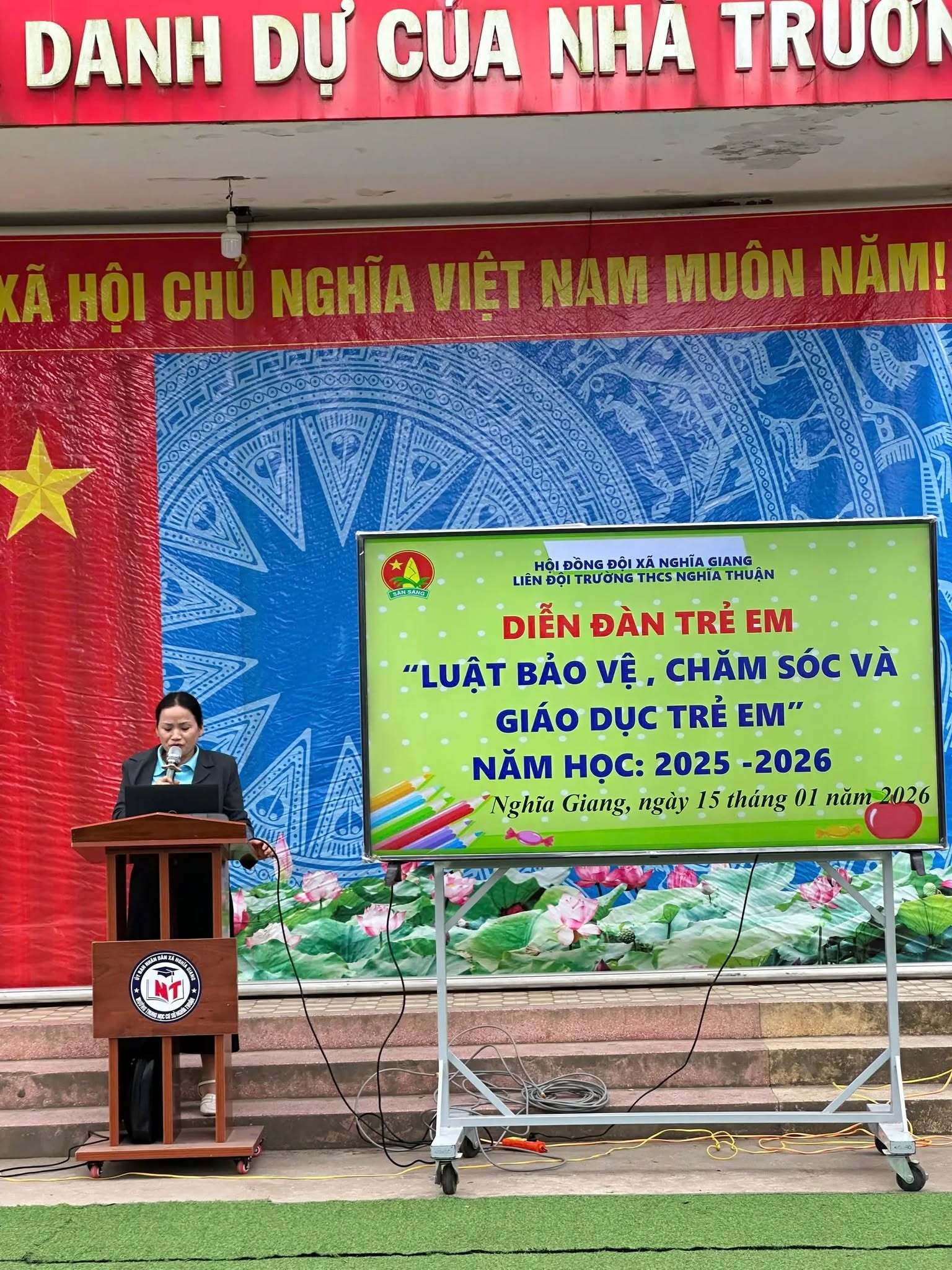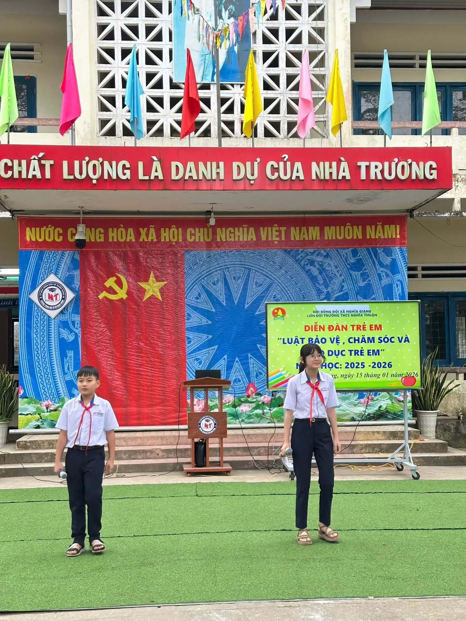 Sáng ngày 15/01/2026, Liên đội Trường THCS Nghĩa Thuận đã tổ chức Diễn đàn trẻ em với chủ đề “Luật Bảo vệ, chăm sóc và giáo dục trẻ em” trong không khí nghiêm túc, gần gũi và đầy ý nghĩa.